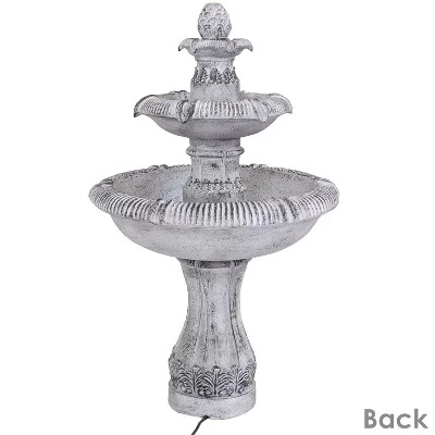 • INCLUDES SUBMERSIBLE PUMP: Enjoy the soothing sounds of this majestic 3-tier water fountain as it cascades down each tier and circulates through the electric submersible pump for a mesmerizing effect. The pump is powered by plugging the cord into a standard electrical outlet.