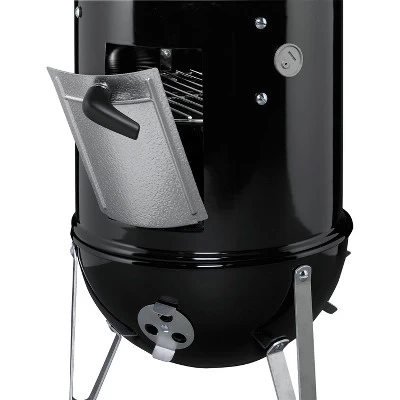 In the time-honored tradition of low and slow, the Weber family of Smokey Mountain Cooker™ Smokers have been delivering succulent main courses in backyards and smoking competition pits around the world. This large 18-inch diameter water smoker is loaded with features to make your smoking event an overwhelming success. Use the built-in lid thermometer and silicone temperature grommet on the side of the smoker in conjunction with the 4 aluminum dampers to keep internal temperatures steady. A large-capacity porcelain-enameled water pan produces gentle steam to keep meats, poultry and fish moist and a large charcoal chamber ensures that you won’t need to keep opening the door to add charcoal and lose precious smoke. Includes two plated steel cooking grates for smoking more than one food.. 10-year limited warranty. Premium-grade cover included.